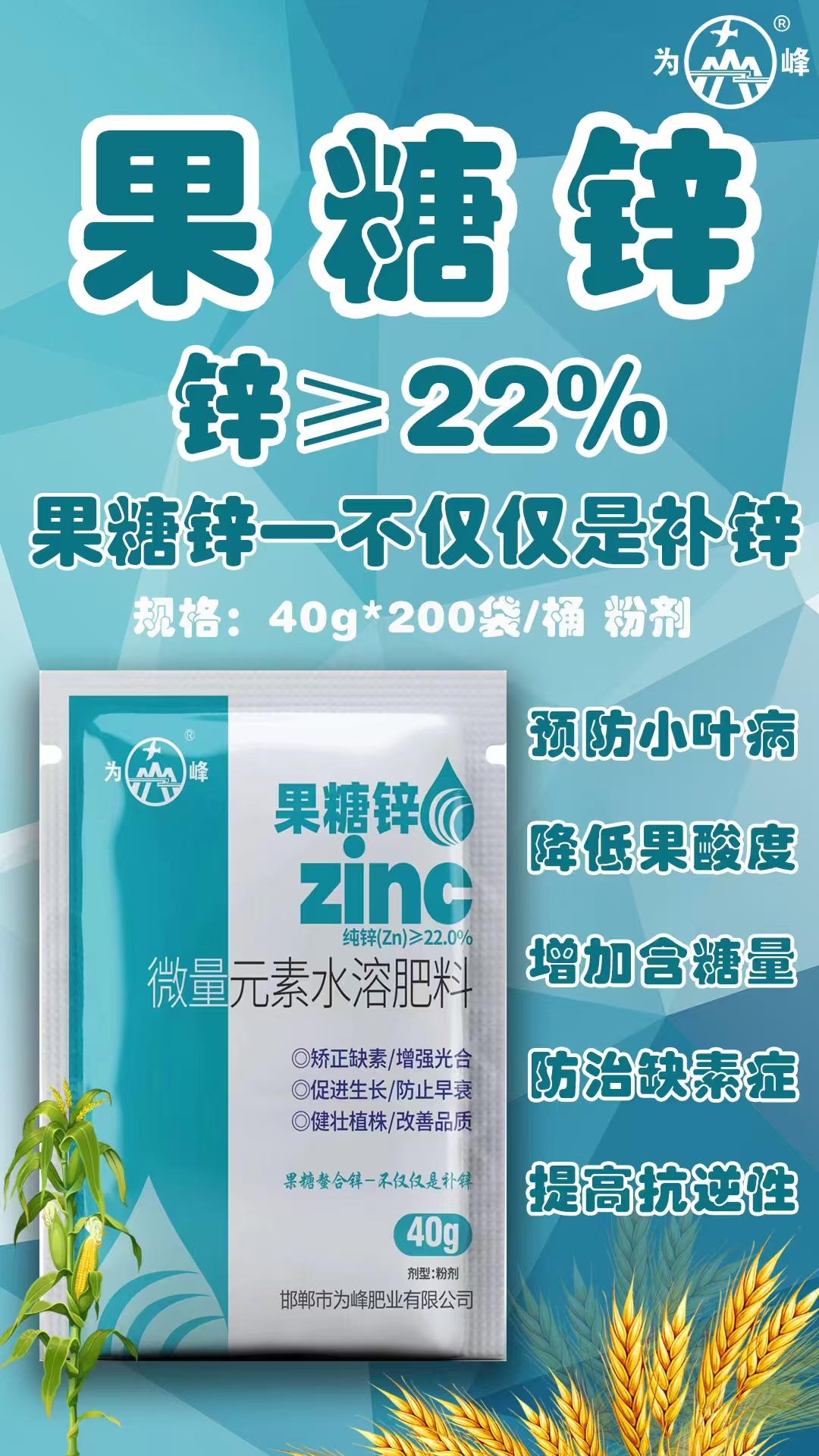 果糖鋅-為峰肥業(yè)果糖螯合鋅微量元素鋅葉面肥